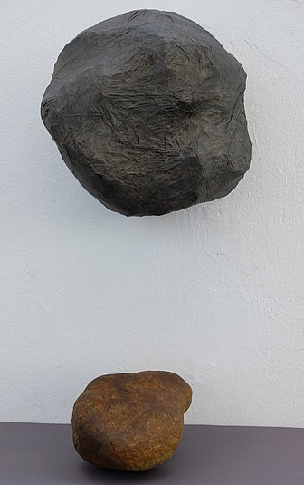 Val de Bagnes, 2017, oil and acrylic on paper towel, glue, grid and stone, 80x40x30cm