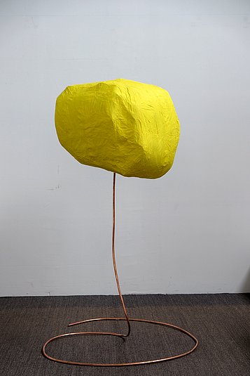 boule jaune citron, 2015, oil on paper towel, glue, grid and tube, 165x100x100cm